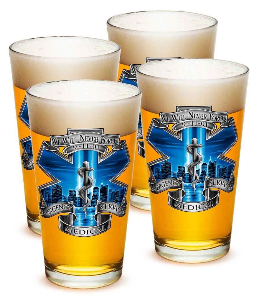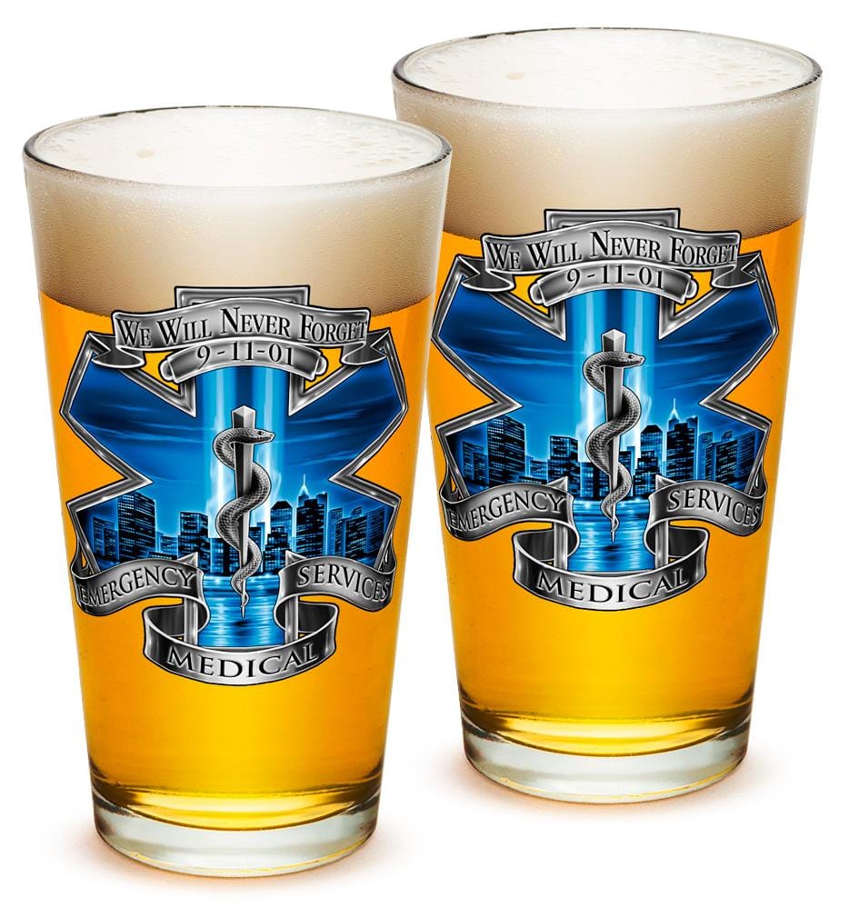 911 EMS Blue Skies we will never forget 16oz Pint Glass Glass Set