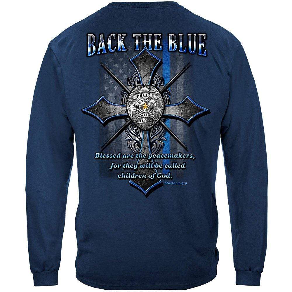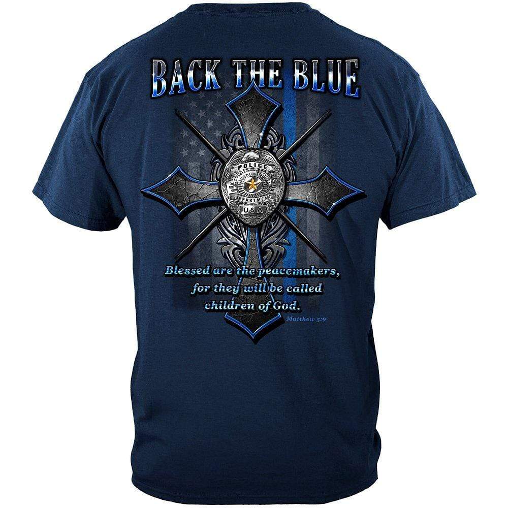Popular Tags: Back the Blue, Matthew 5:9 Christian Shirt, Blessed Are the Peacemakers, For They, Will Be Called Children of God, Flag Of United States, Police Badge, Gospel of Matthew, New Testament, Sermon on the Mount, Beatitudes