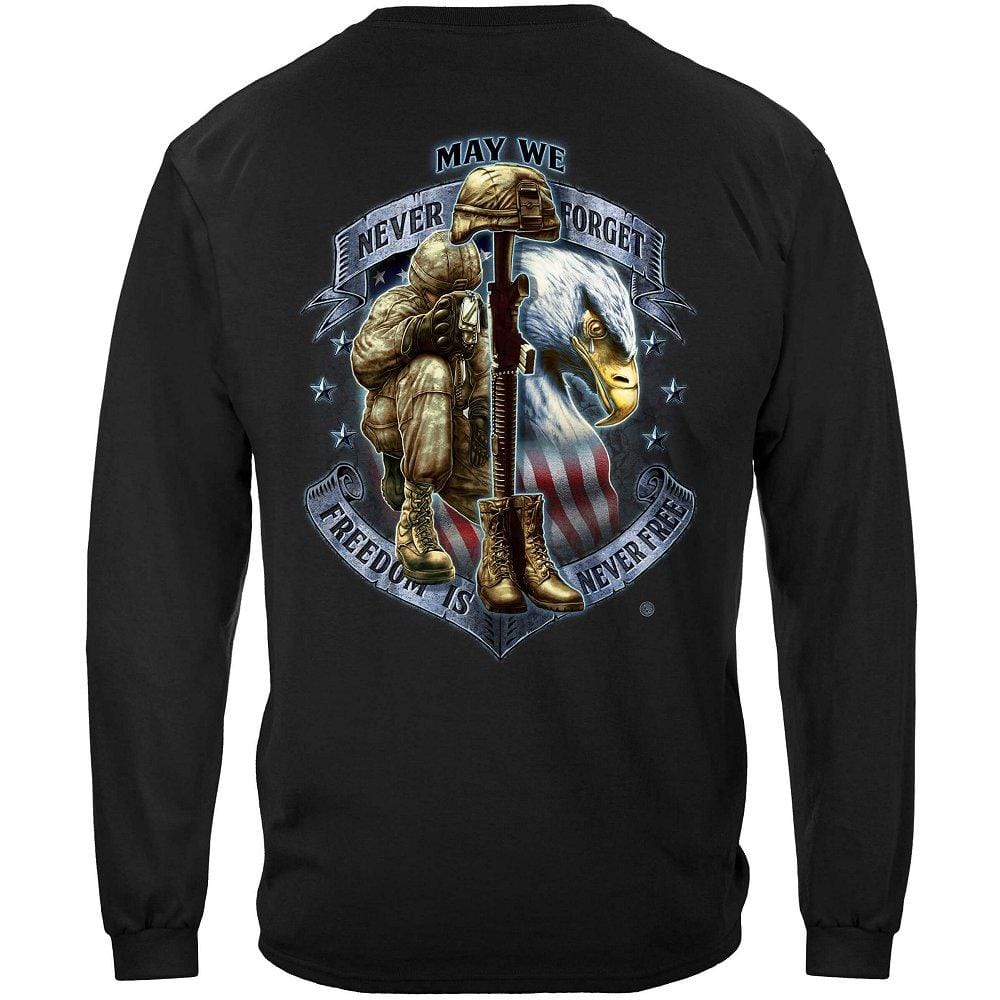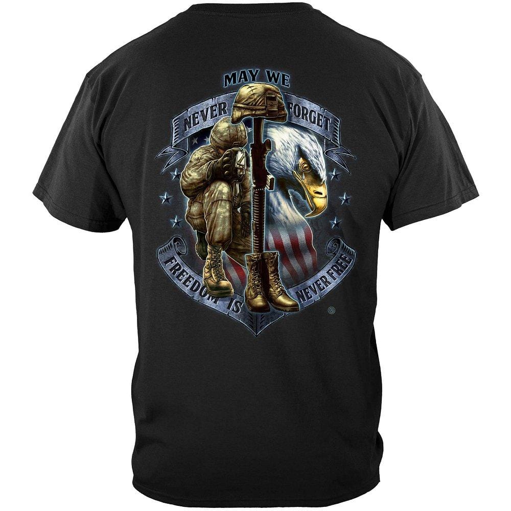 Popular Tags: Freedom is Never Free, May We Never Forget Freedom Is Never Free, Gun, Eagle Stars, US Flag, American Soldier, they tell me, 'Freedom is never free.' I know that- More than most realize. Freedom costs us more Than we should have to give. Freedom cost us blood. It cost us the lives, Of our fathers, Our sons, Our brothers. But while freedom is never free, Remember- It has been bought at a great price, and so is a thing of great value. We must defend it, from those who would take it away. The defense of our freedoms Will cost us- More than we wish to pay. But we must pay, to defend, for if we try to make freedom free, we forget- True freedom is never free.